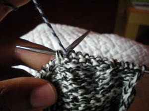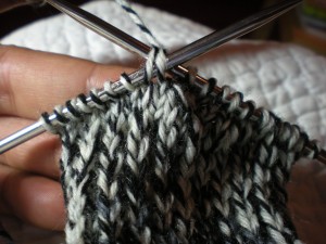 Woohoo – we’re getting close! So now you have two tubes with these rectangular flaps hanging off them and you’re wondering what to do – right?Well, believe me when I say that you’re almost there. I know the anticipation is building as you see the socks develop, and I hope you’re tried them on a few times already by now. I know I sure have. So we’re at the point where we have to create the bottom of the heel in our knitting – what’s referred to as turning the heel. Once we do this it will allow us to pick up some stitches and once again work in the round, creating the foot of the sock. Remember in the first or second post of this KAL where you watched the video on the anatomy of the sock? This is the 45 degree “joint” that connects the first tube to the second tube for you sock. Let’s get going.