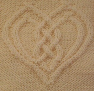 Once you’ve got the hang of that, you can go to this website that shows you how to make Celtic knots. Pay particular attention to the modifications of the basic knot. You’ll realize that they’re the same stops and starts we were just talking about above. With a little practice you should be able to come up with the knitting representation of those same knots. Try drawing them out first, then use the grid as a knitting chart, following the principles for reading a knitting chart. The only limitations to what you can make are those in your own mind. If you don’t believe me, look at the motifs on Dorota’s Ravelry page. If you’d rather not have to come up with them yourself, you can purchase the patterns for the ones she’s come up with. And you can always do both.