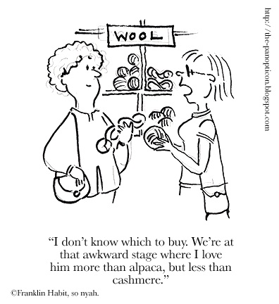 The funnies are back! This is another edition of the Friday funnies, where we take a look at knitting humor and just anything weird or whacky in the world of knitting. As always, if you know any knitting jokes or have an interesting link to something in the world of knitting/fiber arts, please forward them to me through the comments or by email. Here we go for this week.