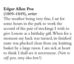 The book is great. It’s not just a bunch of cartoons either – there are essays written by famous people in history that you might not even realized were knitters. Here is an excerpt from the book …