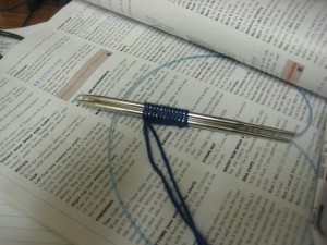 Okay, so let’s get started. Oh, one other thing. You might want to go through the instructions and highlight the instructions for the size you are doing. I am doing the small size, so in my case I need to cast on 48 stitches + 2 (selvedge stitches) for 50 in total. I use the long tail cast on method over 2 needles. I find this works best for the first row of knitting. Once you have cast on your stitches, remove the second needle and start your knitting. You have to be diligent on the first row in pulling the stitches a little tighter.