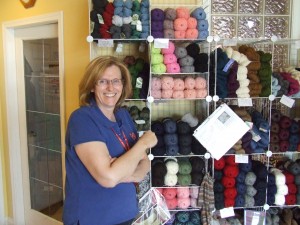 The other side to the story is that the volunteers are all very friendly and informative and love to share their experience and passion for knitting with you. There is no pressure sales going on in this store, and customers are encouraged to sit and knit if they have the time. There are numerous resourses at hand in the form of books, magazines, and a computer, but the best one is the volunteers themselves, always willing to help with problems. The store is open from 10 – 4 from Monday to Saturday. They also have a drop in on Tuesday nights from 7 – 9 pm with a wide variety of ages and stages as Kathie puts it. There is ample room in the store for the knitters that show up and everybody and anybody is welcome to attend.