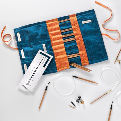 The above interchangeable needles are from Webs. I’d like to talk about the essential parts of any set of interchangeable needles first, then continue on to the extras. I think the most important part of an INS (Interchangeable Needle Set) is the join between the cable and the actual needle tip. Let’s face it, if there’s a snag here and it isn’t smooth, your work will slow down considerably and you’ll also run the risk of destroying your yarn. The Webs INS has a very smooth join. They incorporate a screw and thread setup to attach the nylon to the needle tip, and the end of the screw where it is attached to the nylon is bulbous, allowing for a very smooth transition. Basically, most companies use either the screw method that Webs uses, or some sort of turn and click system. Both have their pros and cons. With the Webs needles that I was sent, the threading on the tips was fine for all but two of the needles. I am certain though that they will provide a replacement and I am sending such a request immediately. That, and making sure that the tips are locked in securely are the only two drawbacks that i can see from the screw type connection. When the tips are screwed in place securely, they are very secure and the join works very well.