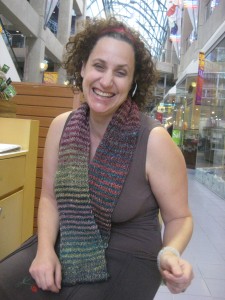As far as I know there isn’t any little saying or anything to announce the arrival of fall. It officially arrived here last week, but there was no fanfare, or special message sent out to say that it had. Where I live the leaves won’t change color that much and it is still a few weeks away anyway. What I have noticed however, is that the amount of scarves people are wearing has increased dramatically. Hmmm … scarves. I love scarves! As a matter of fact, when I’m designing a sweater, I’ll usually make a scarf with the stitch pattern. It gives me a much better understanding and idea of how the overall pattern will look, feel, drape, etc. Yes, a swatch is adequate, but aside from putting it on the inside of the sweater for future repair needs, it doesn’t do that much for me. A scarf is so much more! I can experiment with techniques, try color combinations, stitch textures, test drape, feel fibers, and simply inspire myself. Scarves are also a great telling of upcoming fashion trends. Color, texture, fibers … And there’s no describing the incredible warmth you get from being wrapped up in a scarf. Don’t we all have memories of a favorite scarf on a cold winter’s day?