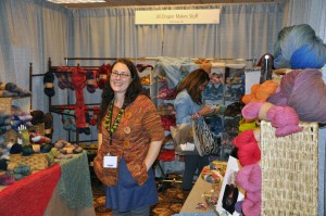 Pam and her partner of Indian Lake Artisans, designers and manufacturers of hexagonal knitting needles … they’re great and I’m getting some for further testing 😉
