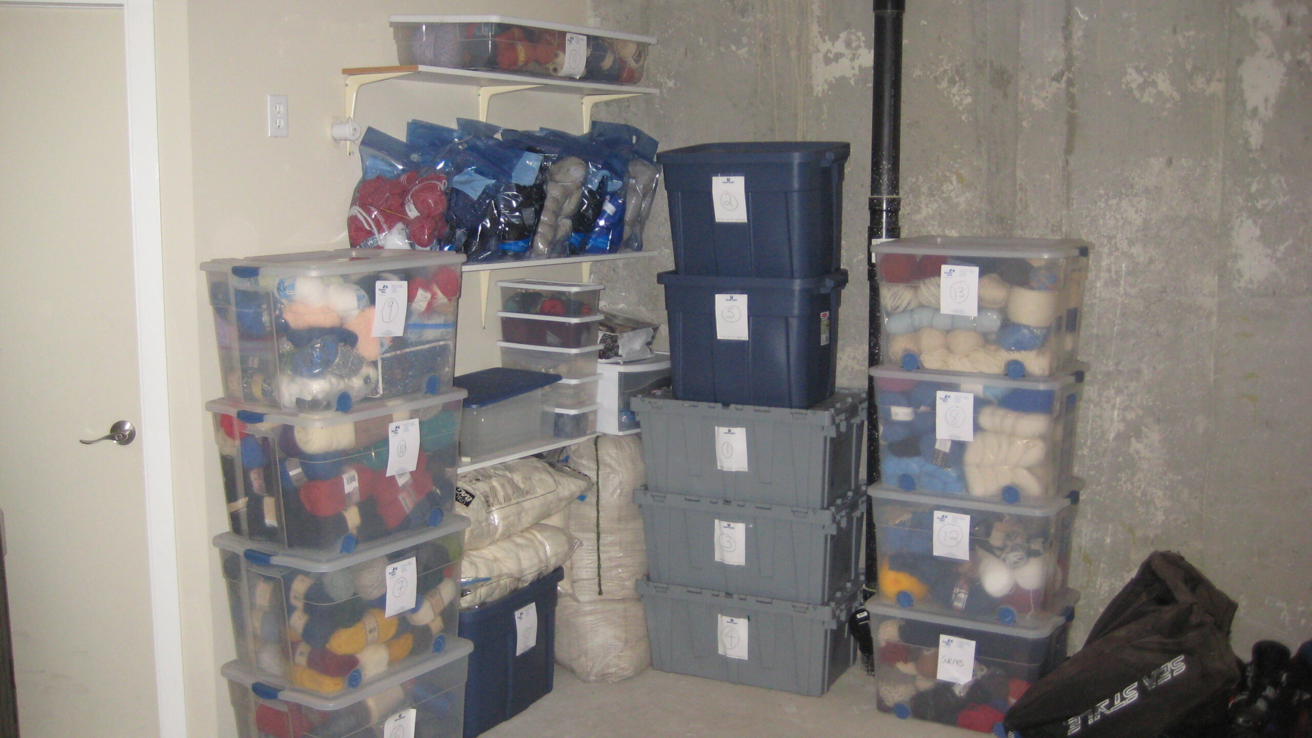 So you’re probably thinking that there’s not much yarn. NOT! I now have 14 60L bins (full), 8 large bags with projects, a large potato sack bag with 80 skeins of yarn @ 275m each, and three vacuum seal bags with 20 skeins each. I took about 60 pictures of the yarns that are not readily commercially available as well. Sometime in the next little while I will transfer the information to my stash on Ravelry so you can see how much yarn it really is. I’ll also make a custom scarf free of charge to the person who is closest in guessing how many balls/skeins of yarn I actually have. I’ll leave this open for one week and post the winner on the 16th (hopefully I’ll have counted by then!). I would actually recommend this to everyone with more than 5 balls of yarn. Now that I think about it, it would be a great idea to start when you only have 5 balls. Then you’d never have to spend an entire day organizing and cataloging your own stash. So now I have a large stash, neatly organized. I no longer have an excuse for not getting my projects done.