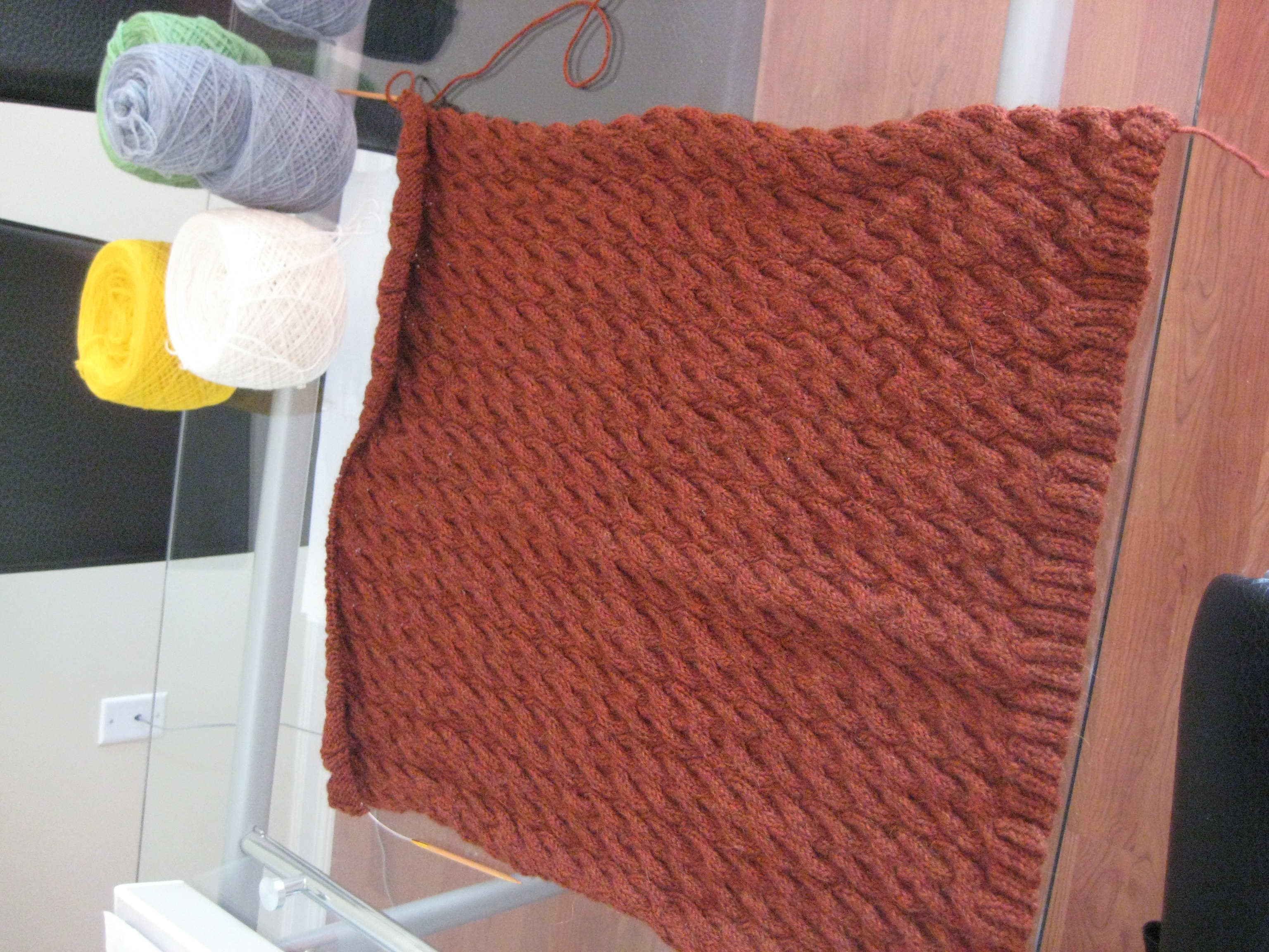 That’s 3 sweaters and 2 accessories and 1 I don’t know where to categorize it object (the boxers). Sorry, but these are all accounted for so there won’t be a contest this month to give one away, but I’ll make up for it next month – promise! I’m going to do a version of the boxers on a machine to ensure I have the pattern right because I’ve been knitting it for about 6 hours now and I’m only halfway across the right panel. Knitting a larger object in sock yarn is a bit of a pain! And about 3 hours in it struck me that I should have used the Patons Stretch sock yarn! Darn – should have thought about that one. Anyway, I’ll let you know how it all turns out!