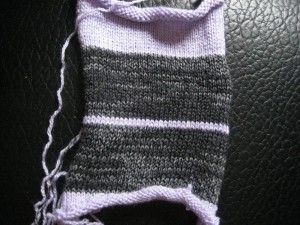 So why use a machine? Well, besides the reasons above (mostly speed) it also allows you to do some experimenting because of the time factor. Which is what I’m going to do with these boxers. Yes Chris, I do plan on finishing my first pair by hand, but I want to do them on the machine first and make sure I have it all right. I also want to make a stretchy pair but I just don’t see myself spending 20 – 25 hours per pair and making more than one of these. So tomorrow I’ll work on them as I’ve done a swatch and need it to relax to measure it and make whatever adjustments are necessary. I’ll take some pics and show you how they came out! There’s the finished swatch on the right. You’re looking at over 3600 stitches done in about 15 minutes!