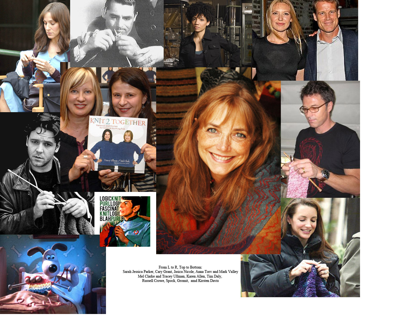 Grommit is a knitter. At least, he’s depicted as a knitter in animation. Since he is an animated character, we’re not really able to count him, but we’ll put him down under the heading of honorable mention. As you discovered last week Cary Grant was a knitter – at least for a few minutes in the movie Mr. Lucky. That’s enough to mention him at least here, especially since the list of males is a little short (come on guys, pick up the sticks). As for other men, actor Tim Daly (Pete Wilder on Private Practice and lots of movies), is a well known celebrity knitter who has no qualms about people knowing he knits. Way to go Tim! Also, Mark Valley (Christopher Chance of Human Target) is a male knitter. I have actually met Mark when working on set and seen him knitting. He’s very modest and says he’s just does scarves and hats, but I’m sure he’ll graduate to bigger and more complex things very soon.